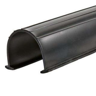 Try the Thermwell Products Co. Inc. 2-3/4 in. x 18 ft. Vinyl Replacement Weather Seal for 2-Car Garage Doors. This heavy-duty black vinyl weather strip slides into most garage door bottom tracks for easy installation (door sold separately).