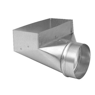 Used for right-angle transition from round pipe or insulated flexible duct to a register or grille.