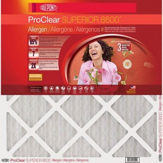 The DuPont ProClear Superior is an efficient air filter that reduces 85% of large airborne particles and decreases 9 common airborne allergens. Electrostatically charged air filter.