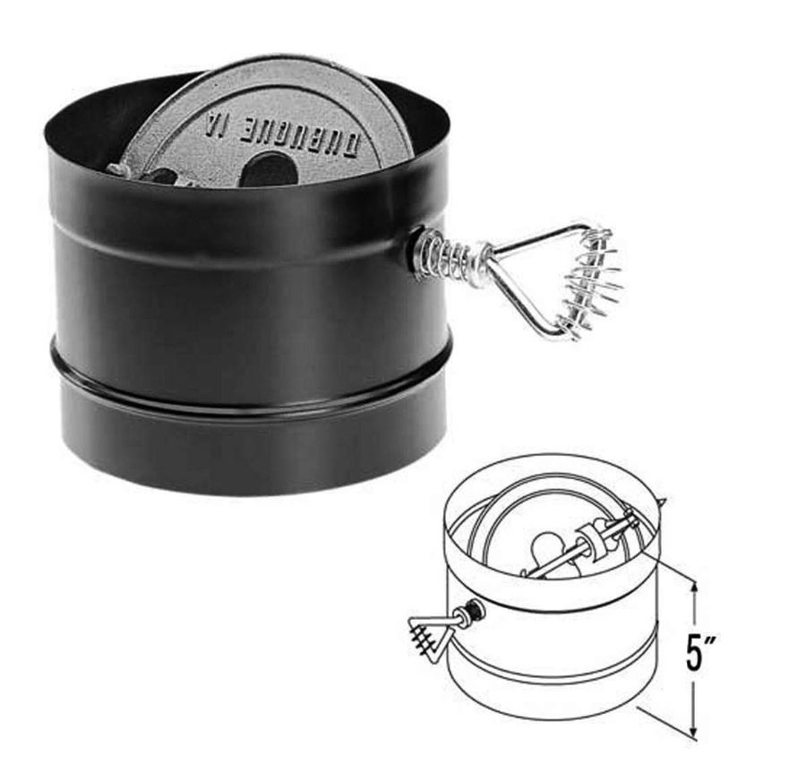 Install at, or close to, the stove outlet in-line. 5” pipe section with the damper pre-installed.