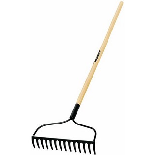 14" wide head, 2-5/8" long teeth, 14 tines, 54" hardwood handle Poly ferrule.