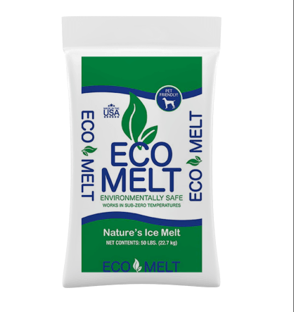 Eco Melt contains natural products with environmental and pet-friendly formulations, no artifical dyes, and is calcium chloride free. Metls ice even in sub-zero temperatures.