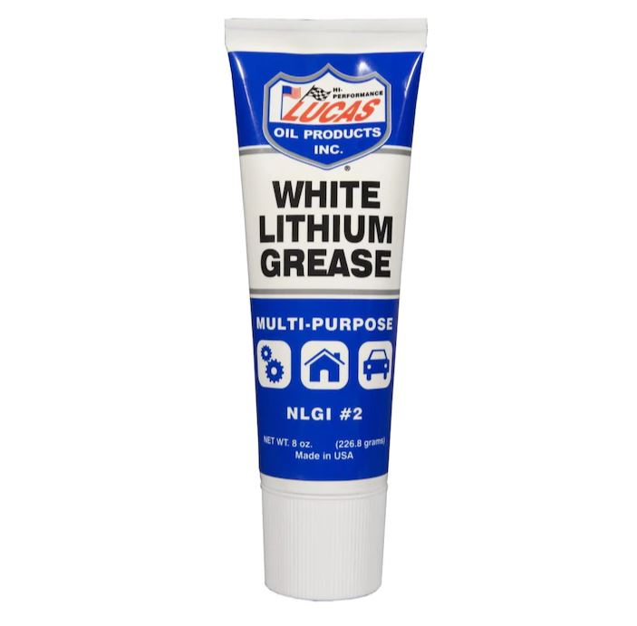Lucas white lithium grease is a multi-purpose high quality NLGI No. 2 formulation. White and creamy in appearance, the white lithium grease resist extreme pressure properties and is recommended for everything from household applications, to a variety of automotive uses including chassis, trucks, tractors and contractor equipment. Not recommended for use in wheel bearings.