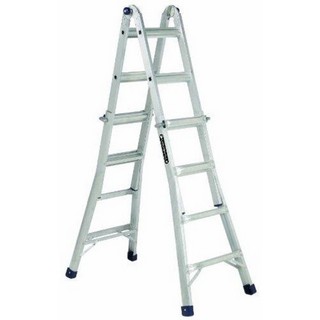 This ladder has the ability to change into a step, stairway, plank support ladder, and an extension ladder. Features include easy operation and a lightweight design, wider footprint for more stability, and flip and lock hinges.