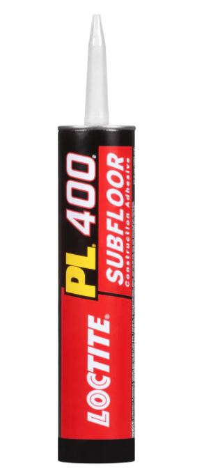 Loctite PL 400 Subfloor Construction Adhesive provides a powerful, permanent bond and is formulated for all heavy duty interior or exterior subfloor construction. Cold weather formula for easier extrusion and excellent adhesion in all weather conditions. Bonds dry, wet, frozen and treated lumber to most building materials. Offers fast set and superior strength and development.