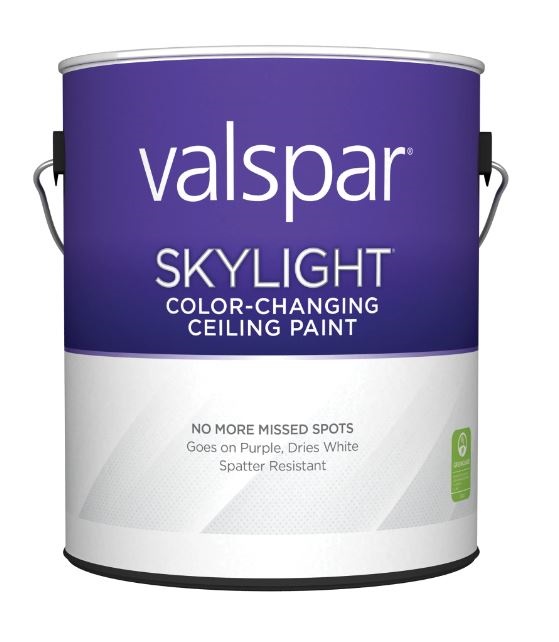 Never miss a spot with this color-changing ceiling paint! This product applies as a light purple color to easily indicate painted areas, and dries to a white, matte finish to minimize surface imperfections. This spatter resistant formula makes for easy cleanup.