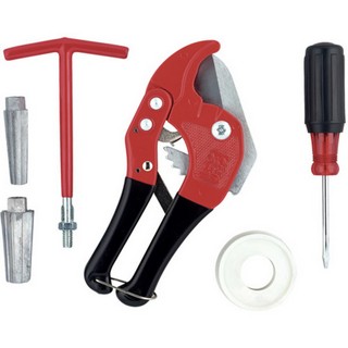 Includes one plastic nipple extractor handle, one 1/2" and one 3/4" nipple extractor heads, one 1/2" to 1" PVC cutting tool, one sprinkler head adjustment screwdriver and one roll of pipe thread seal tape.