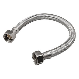 Perfect for a variety of plumbing applications. Lead free. Compression inlet. Braided stainless steel. Chrome plated brass nuts. Reinforced PVC tube lining. Color coded packaging.