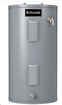 Medium height electric water heater for average demand applications. Two 4500 watt elements. 3" foam insulation. 40 gallon water heater.