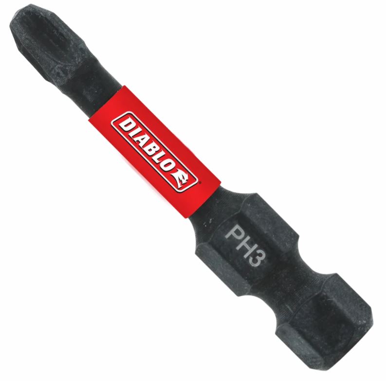 Diablo's driver bit range of Phillips bits delivers maximum performance, extreme durability and up to 50X longer life when installing and removing fasteners. An optimized tip design provides a strong, precise grip that reduces wear, stripping and slippage. MaxTorque Zone delivers ultimate torque resistance by absorbing torque, creating less stress at the tip when tightening and removing nuts and screws. This range is Impact Strong™, delivering increased shank stability and durability in cordless and corded impact and drill drivers.