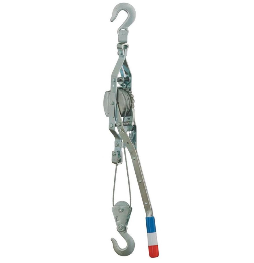 The 2 Ton Professional Power Puller makes tough projects an easy one-person job. The cable limiter keeps two wraps of cable on the ratchet wheel and releases the load one notch at a time. The 6 ft. pull cable is made of galvanized aircraft cable. The 18 in. handle has a contour grip and provides a leverage 36:1. Meets OSHA and ASME specs B.30.21-1999.