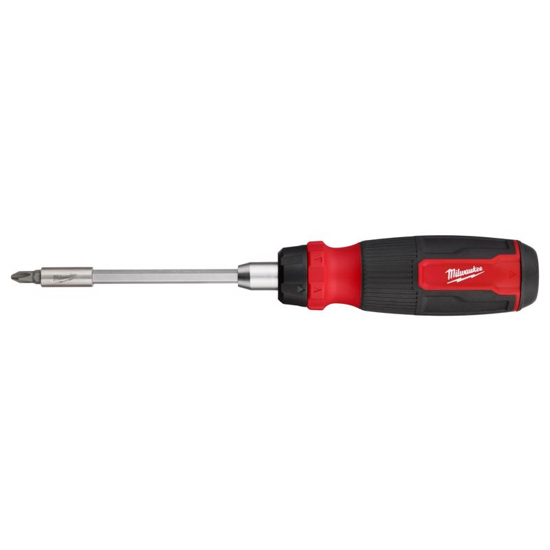 The Milwaukee 14-in-1 Ratcheting Multi-Bit Screwdriver is the most versatile multi-bit screwdriver. This multi-bit driver features easy-access in-handle storage which keeps bits organized, allowing you to quickly change bit sizes and types. The durable, all-metal ratchet allows for higher torque and faster driving. The removable bit holder has a 1/4 in. hex shank, making it a powerful tool ready for maximum job site versatility. The chrome-plated bit holder provides rust protection and reduces wear from elements on the job site. Includes: P1, P2, SL 1/4 in. SL 3/16 in. SQ1, SQ2, SQ3, ECX1, ECX2, T10, T15, T20, T25 and 1/4 in. nut driver.