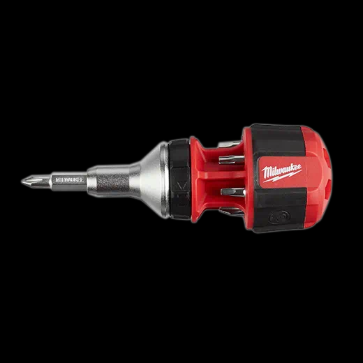 Our 8-in-1 Compact Ratcheting Multi-Bit Driver delivers versatile performance in a compact design. An all-metal ratchet gives you 2X faster driving in high-torque applications without sacrificing durability or control. Its interchangeable power groove bits are power tool compatible giving you maximum job site versatility. The multi-bit screwdriver also has wrench-ready hex shanks providing you with additional leverage. The interchangeable bits are precision machined and chrome-plated, providing marine-grade rust protection and reduced wear giving you the best job site durability. The compact screwdriver features magnetic bit retention providing you with consistent driving performance.