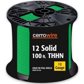 Cerrowire 100 ft. Green 12 Solid THHN Wire will help you complete safe, reliable indoor wiring installations. Its copper conductor is insulated in PVC. It has a nylon jacket.