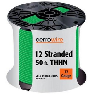 50 feet, 12 stranded, green building wire, type thhn, nylon jacketed, copper, 600v, clam shell.