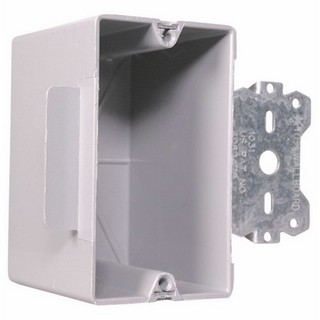 Non Metallic Switch Box, Height 3-3/4 In Width 2-1/4 In Depth 2-23/32 In Capacity 18 Cubic In 1 Gang 4 Quick Entries Molded Thermoplastic Push in Single Turn Screw Device Mounting Hole 3/8 in Offset Bracket, Steel/Wood Stud Mounting.