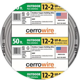 50 feet 12/2 underground feeder cable with ground, plastic jacketed, copper, cut lengths.