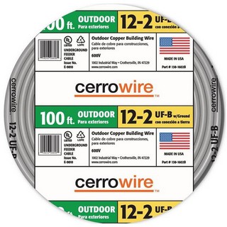 100 feet 12/2 underground feeder cable with ground, plastic jacketed, copper, cut lengths.