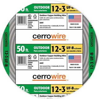 Romex SIMpull Type UF-B Building Wire, 12/3, 50'.
