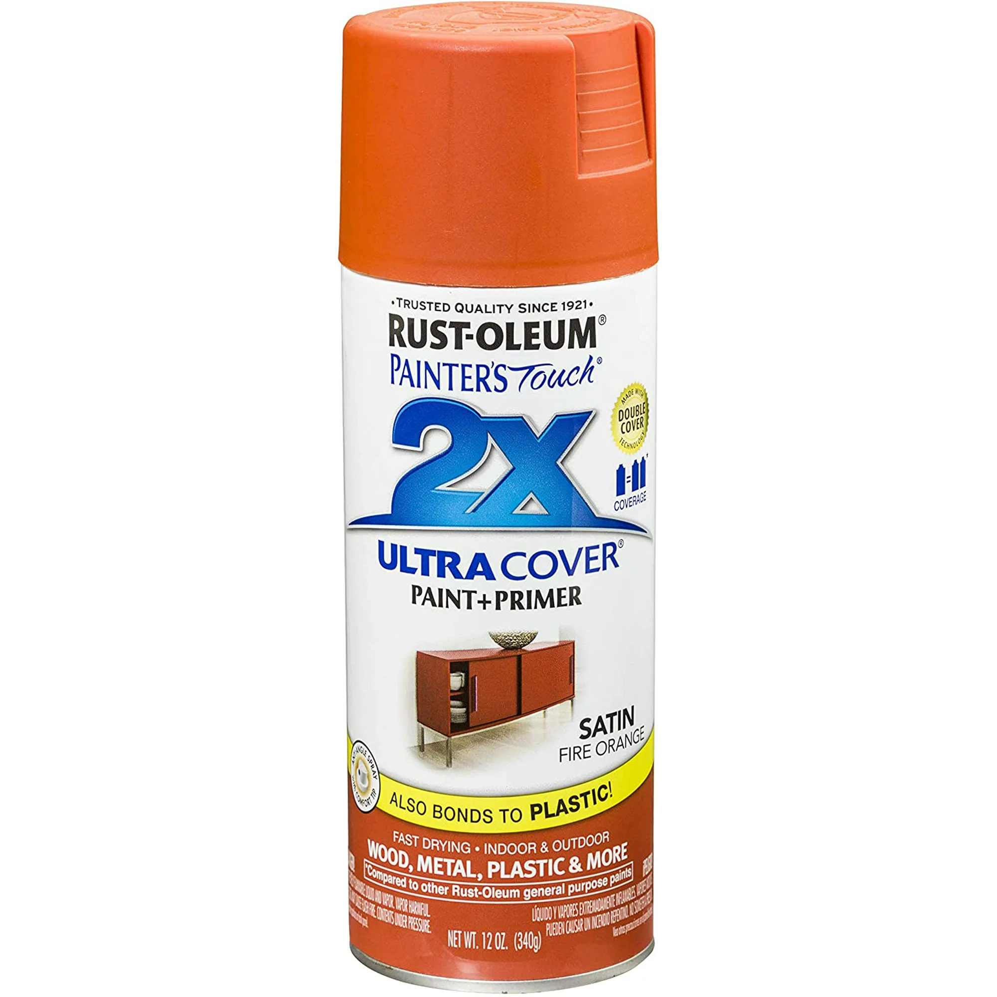 Rust-Oleum Painter's Touch 2X Ultra Cover Satin Fire Orange Paint+Primer Spray Paint 12 oz