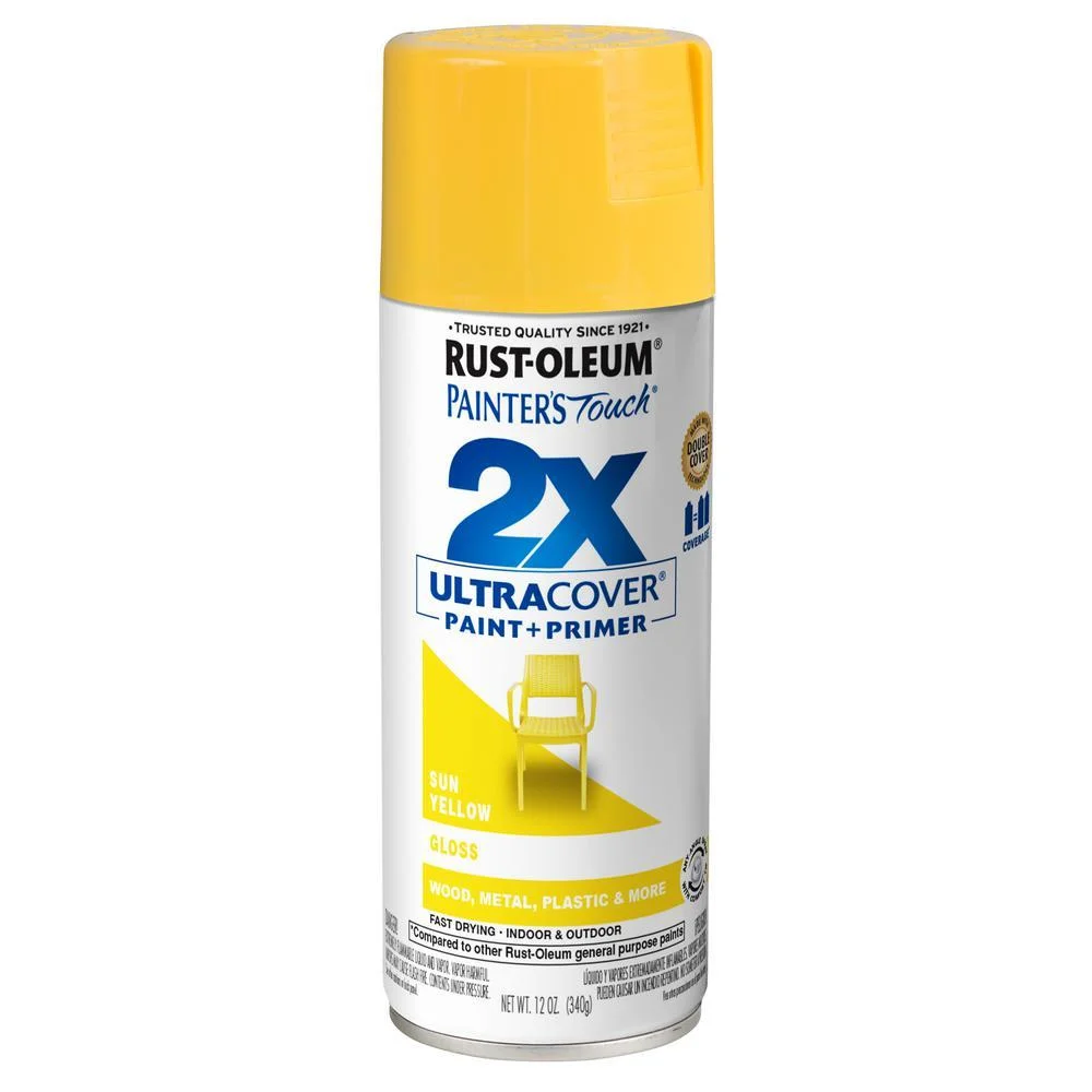 Rust-Oleum Painter's Touch 2X Ultra Cover Gloss Sun Yellow Paint+Primer Spray Paint 12 oz