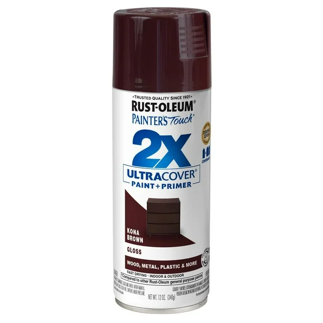 Rust-Oleum Painter's Touch 2X Ultra Cover Gloss Kona Brown Paint+Primer Spray Paint 12 oz