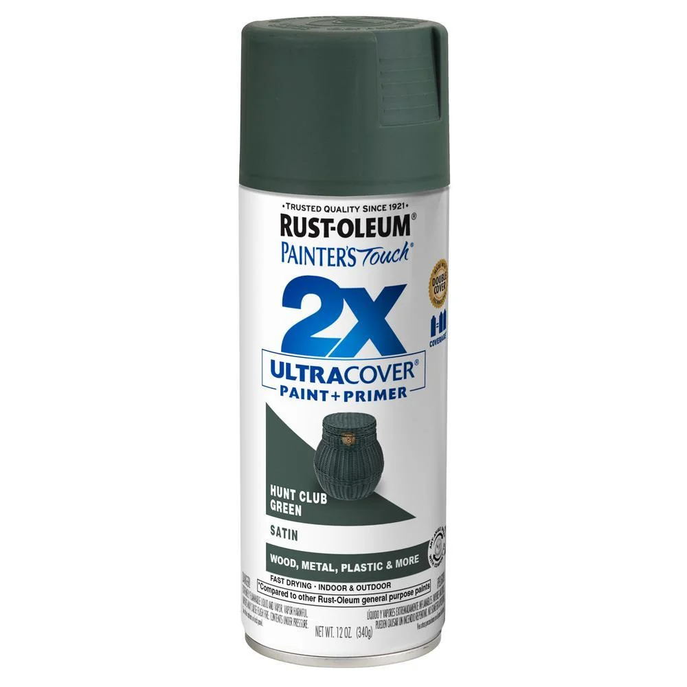 Rust-Oleum Painter's Touch 2X Ultra Cover Satin Hunt Club Green Paint+Primer Spray Paint 12 oz