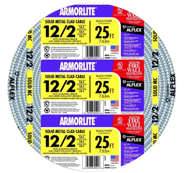 25 ft. 12-2 CU THHN Black/White/Green Metal Clad Armorlite Cable