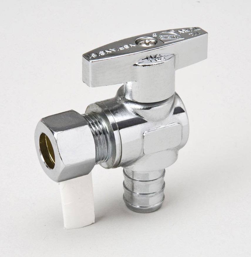 1/2 in. PEX x 3/8 in. Comp Chrome Plated Brass 1/4 Turn Angle Stop Valve