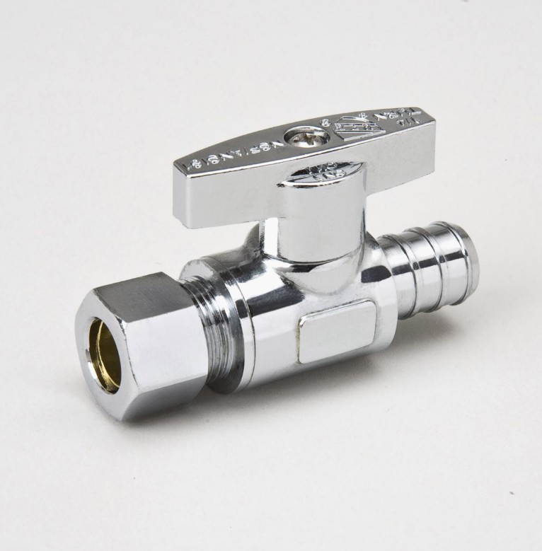 1/2 in. PEX x 3/8 in. Comp Chrome Plated Brass 1/4 Turn Straight Stop Valve