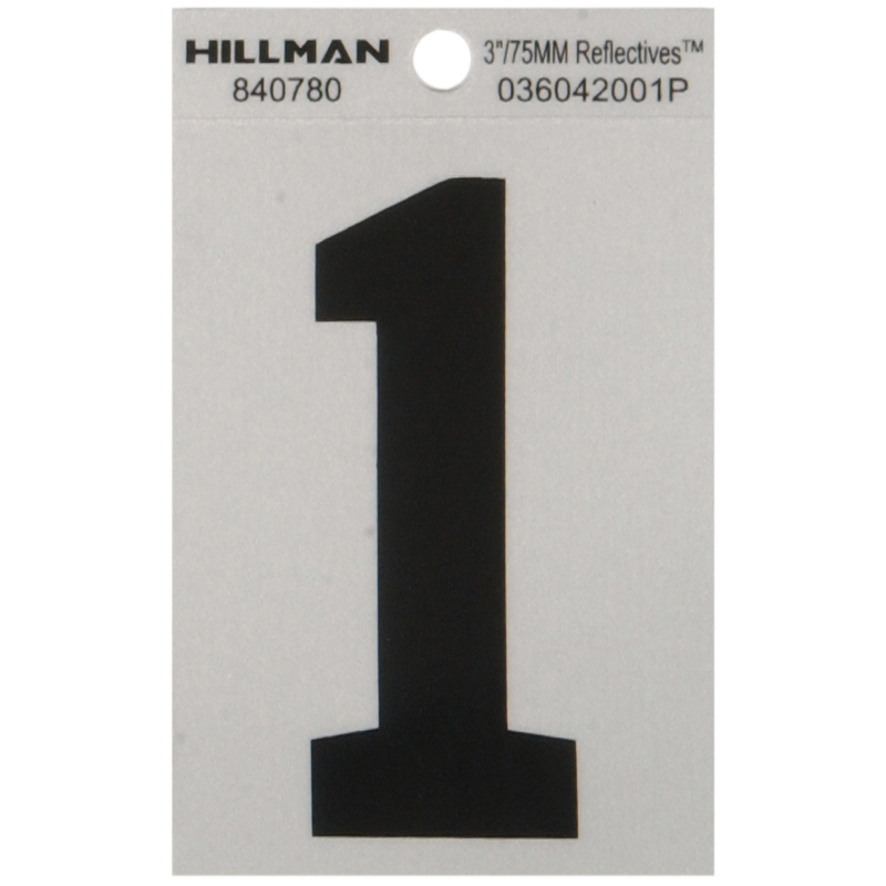 3 in. Reflective Black Vinyl Self-Adhesive Number 1