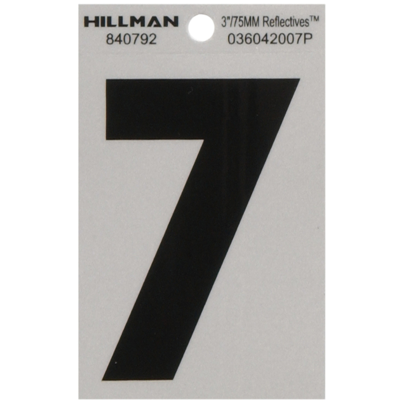 3 in. Reflective Black Vinyl Self-Adhesive Number 7