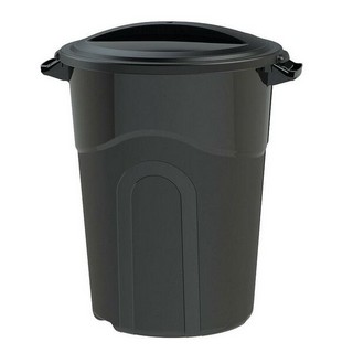32 Gallon Black Round Outdoor Trash Can with Lid