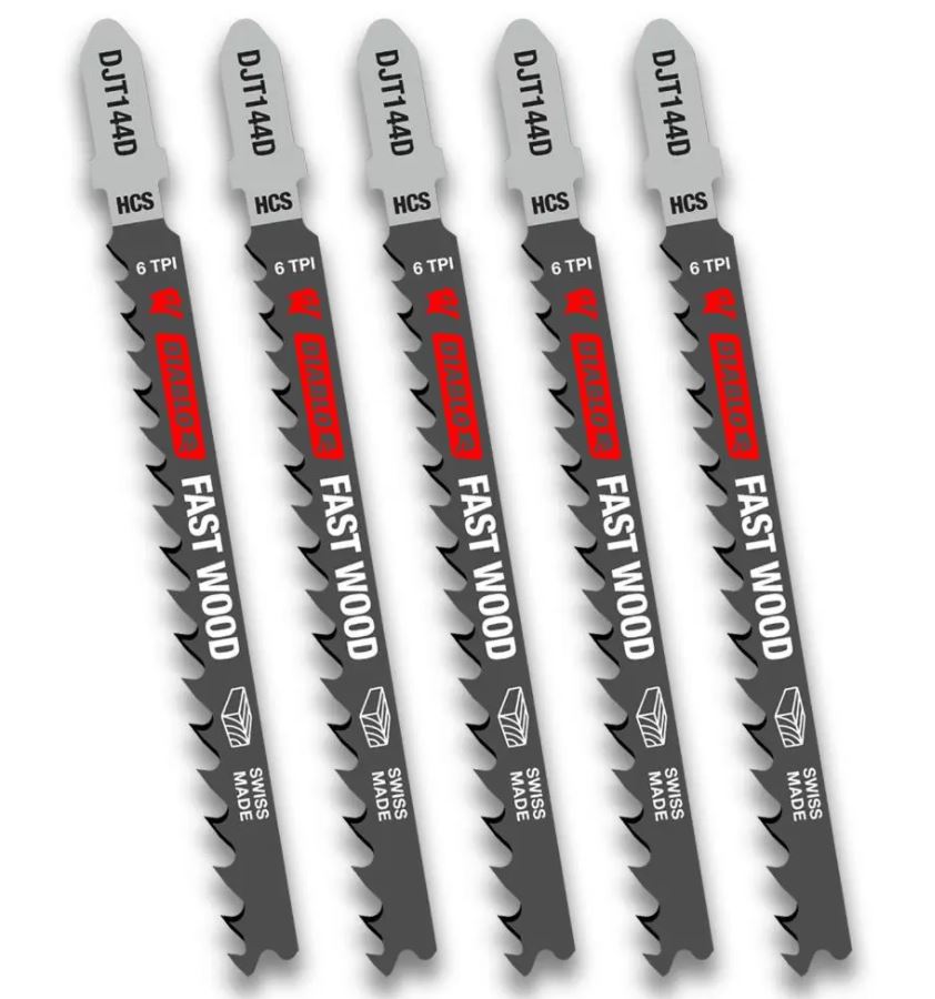 4 in. 6 TPI High Carbon Steel T-Shank Jig Saw Blades for Fast Wood Cuts 5-Pack