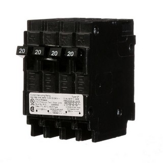 Q22020CT Triple Circuit Breaker, Plug-In, 20/20 Amps