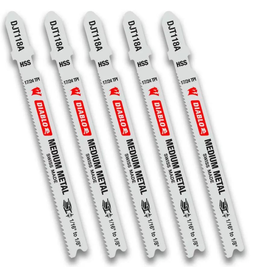 3-5/8 in. 17/24 TPI High Speed Steel T-Shank Jig Saw Blades for Medium Metal 5-Pack