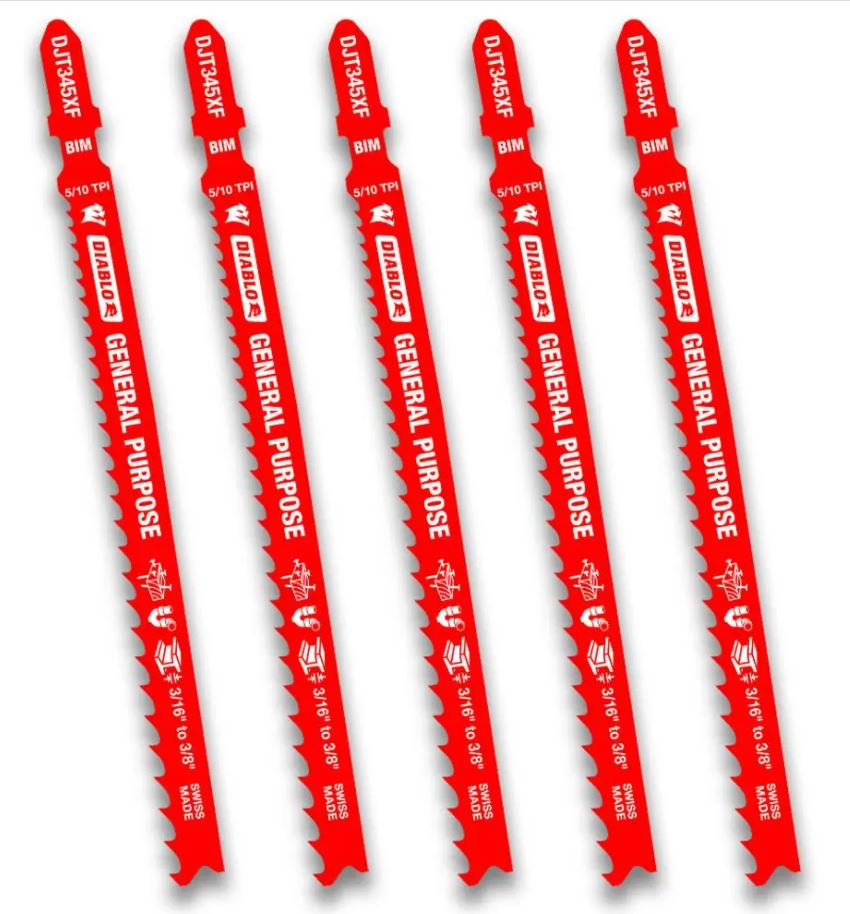 Bi-Metal T-Shank Jig Saw Blade Set for Laminate Cutting 5-Pack