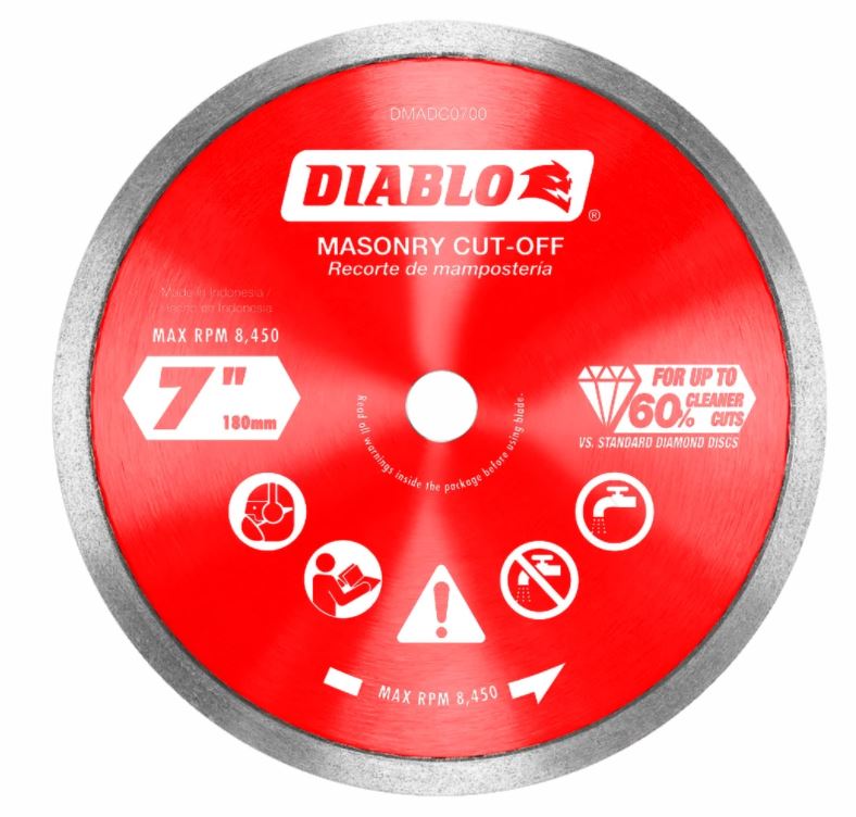 7 in. Diamond Continuous Rim Cut-Off Discs for Masonry