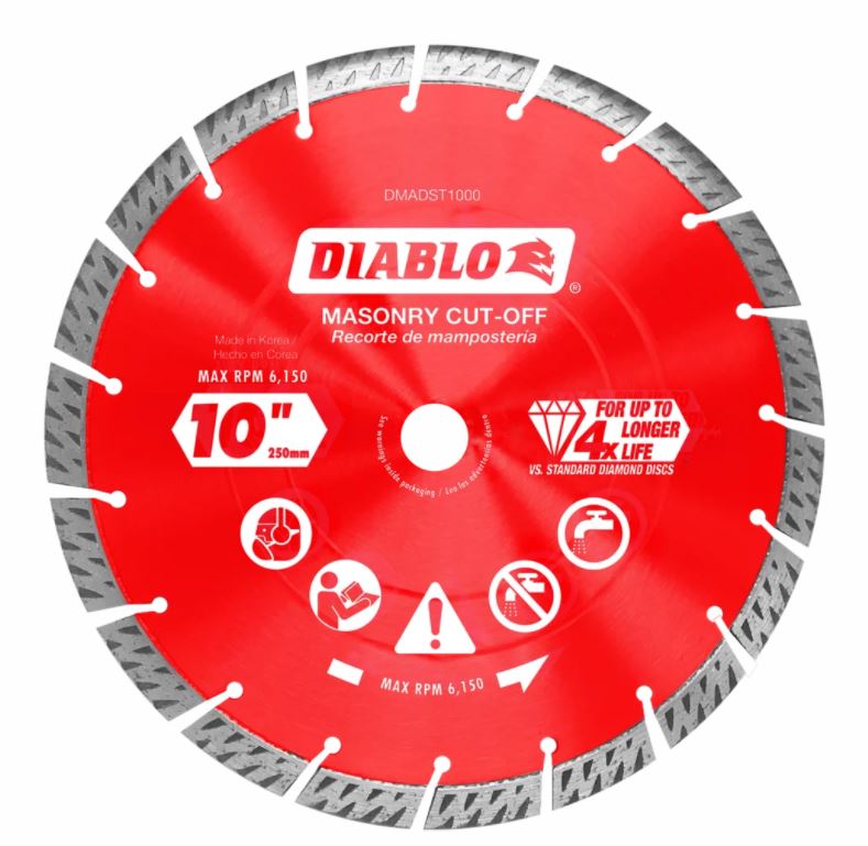 10 in. Diamond Continuous Rim Cut-Off Discs for Masonry