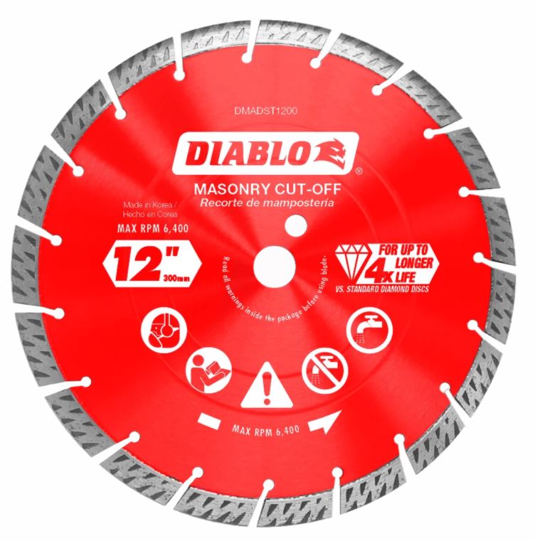 12 in. Diamond Segmented Turbo Cut-Off Discs for Masonry