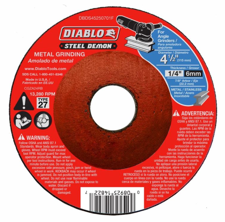 4-1/2"x1/4"x7/8" Steel Demon Type 27 Metal Grinding Disc