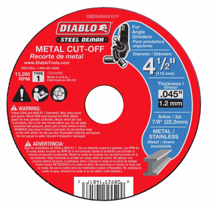 4-1/2"x.045"x7/8" Steel Demon Type 1 Metal Cut-Off Disc