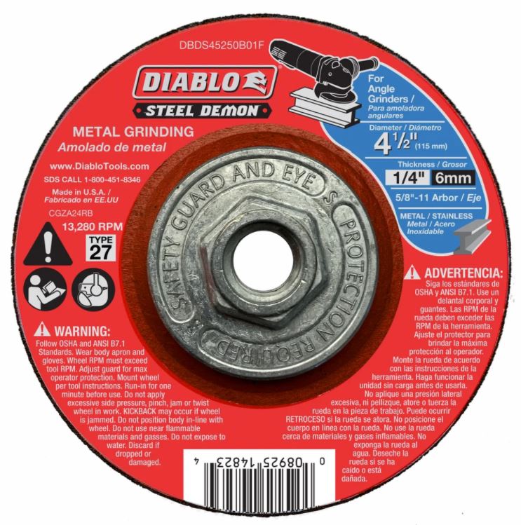 4-1/2"x1/4"x5/8-11 Steel Demon Type 27 HUB Metal Grinding Disc