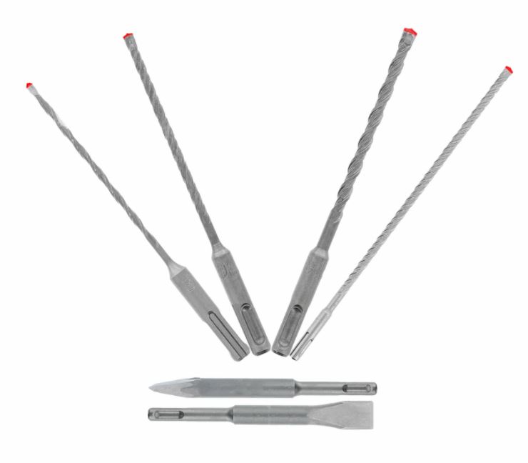 SDS-Plus Rebar Demon 4-Cutter Full Carbide Head Hammer Drill Bit & Chisel Set 6-Pack